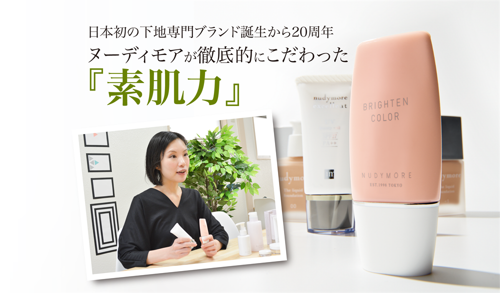 最近では、ようやく化粧下地での肌づくりが重要視されはじめましたが、その下地に20年も前から着目。日本初の下地専門ブランド「ヌーディモア」は、常にブレないブランディングで成長してきました。