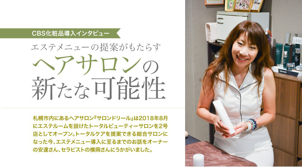 エステメニューの親切にあたり、CBS化粧品の導入は、自信を持って進めていけた要素のひとつだという。