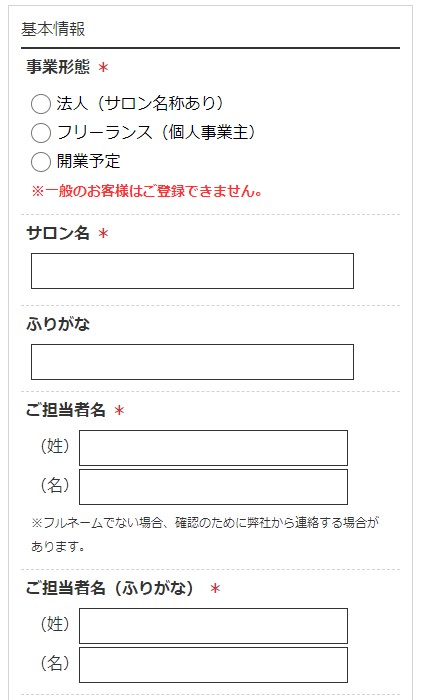 ・サロン様の場合は、「法人(サロン名称あり)」を選択してください。