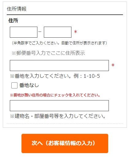 ※必要情報入力後「次へ(住所情報の入力)」をクリックしてください。