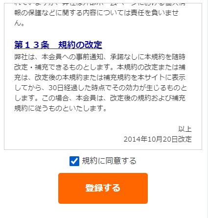 ※「登録する」に関しては、下記「会員規約について」を確認してください。